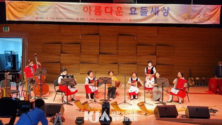 ±¤ÁÖÁö¿ªÀÇ ´ëÇ¥ÀûÀÎ À½¾ÇŬ·´ÀÎ ±¤ÁÖ¿£½Ã¾È¿äµ¨Å¬·´(ȸÀå ±èÁ¤Èñ)Àº ±¤ÁÖ¹®ÈÀç´Ü 2021 »ýȰ¹®È¿¹¼úÁö¿ø»ç¾÷ Áö¿øÀ» ¹Þ¾Æ Áö³ 10¿ù 23ÀÏ(Åä) ½Ö¾Ï°ø¿ø 1Â÷ °ø¿¬¿¡ À̾î 11¿ù 6ÀÏ(Åä) ±¤Áֺϱ¸¹®È¼¾ÅÍ¿¡¼ â´Ü Á¦44Áֳ⠱â³ä ¿¬ÁÖȸ <¾Æ¸§´Ù¿î ¿äµé¼¼»ó> 2Â÷ °ø¿¬À» °³ÃÖÇÏ¿´´Ù.