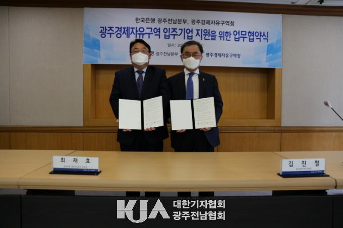 [´ëÇѱâÀÚÇùȸ ±¤ÁÖÀü³²Çùȸ Á¤½ÂÇö ±âÀÚ] ±¤ÁÖ°æÁ¦ÀÚÀ¯±¸¿ªÃ»(ÀÌÇÏ ¡®±¤ÁÖ°æÀÚû¡¯)Àº 12ÀÏ Çѱ¹ÀºÇà ±¤ÁÖÀü³²º»ºÎ¿Í ±¤ÁÖ°æÁ¦ÀÚÀ¯±¸¿ª Ȱ¼ºÈ¿Í Áö¿ª°æÁ¦ ¹ßÀüÀ» À§ÇÑ ¡®ÀÔÁÖ±â¾÷ ±ÝÀ¶Áö¿ø ¾÷¹«Çù¾à(MOU)¡¯À» ü°áÇß´Ù.
