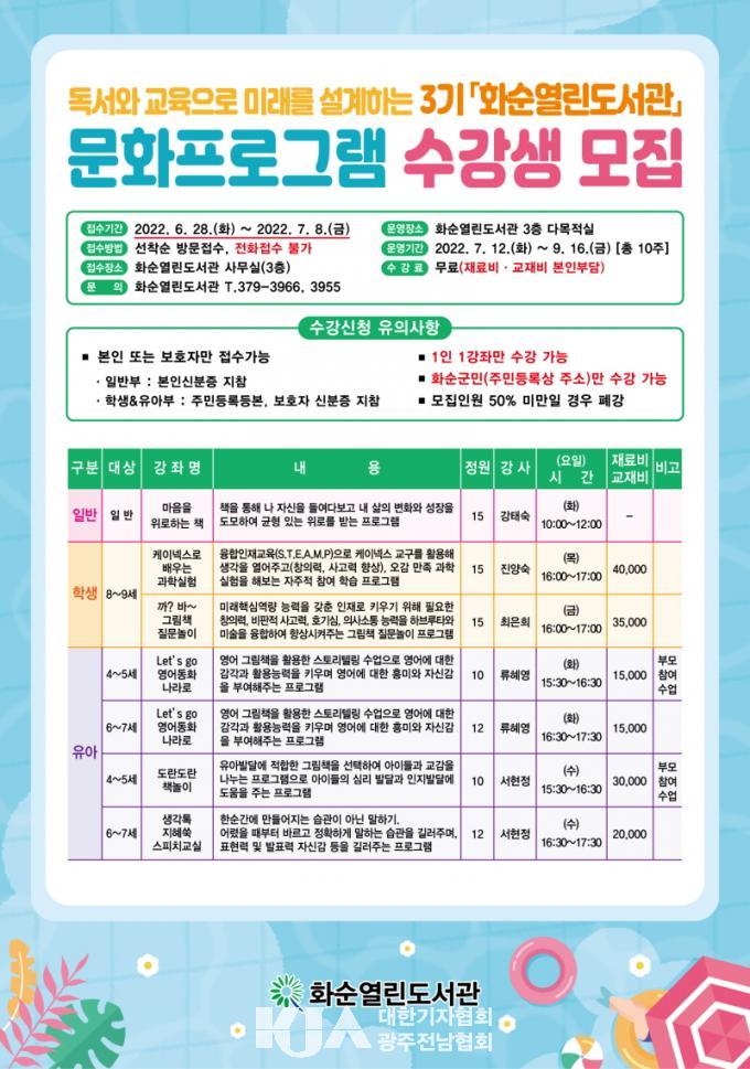 | ȼø¿¸°µµ¼°ü, 2022³â 3±â ¹®ÈÇÁ·Î±×·¥ ¿î¿µ 6¿ù 28ÀϺÎÅÍ ¼±Âø¼ø ¼ö°»ý ¸ðÁý...ÃÑ 7°³ °Á ÁøÇà |