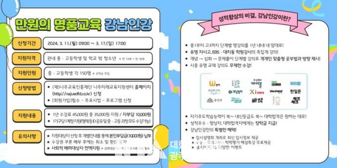 1³â ¼ö°·á´Â 4¸¸5õ¿øÀ¸·Î ³ªÁ̷ֹ¡±³À°Áö¿ø¼¾ÅÍ¿¡¼ 3¸¸5õ¿øÀ» Áö¿øÇÑ´Ù. Áö¿ø±Ý ½ÅûÀº ÁßÇлý, °íµîÇлý °¢°¢ 150¸íÀ» ¼±Âø¼øÀ¸·Î ¹Þ´Â´Ù.