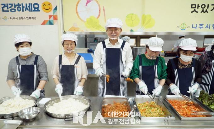 À± ½ÃÀåÀº ¿ÀÀü ¸¶Áö¸· ÀÏÁ¤À¸·Î ³ªÁÖ½ÃÁߺγëÀκ¹Áö°ü¿¡¼ ¾î¸£½Å 300¿©¸íÀ» ´ë»óÀ¸·Î ¹è½Ä ºÀ»ç¿¡ Âü¿©ÇÑ ÈÄ ¿øµµ½É û³â â¾÷¿¡ ¼º°øÇÑ ½Ä´ç(û»ê¿Á)¿¡¼ û³â »ç¾÷°¡, »óÀÎȸ °ü°èÀÚ¿Í ¿ÀÂùÀ» ÅëÇØ »ó±Ç Ȱ¼ºÈ ¹æ¾ÈÀ» ³íÀÇÇß´Ù.