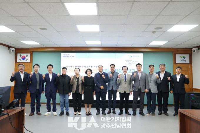 [´ëÇѱâÀÚÇùȸ ¸ñÆ÷½ÃÁöȸ À强´ë ±âÀÚ] ¸ñÆ÷½ÃÀå ±ÇÇÑ´ëÇà Á¶¼®ÈÆ ºÎ½ÃÀå°ú ±è¿øÀÌ ±¹È¸ÀÇ¿ø, ¼¹ÌÈ ±¹È¸ÀÇ¿ø, Á¶¼º¿À ¸ñÆ÷½ÃÀÇȸ ÀÇÀå, ½Ã¡¤µµÀÇ¿ø ÀÏÇàÀº 3ÀÏ ¿ÀÀü, Ãß¼® ¿¬ÈÞ¿¡µµ ½Ã¹ÎÀÇ ¾ÈÀü°ú ÆíÀǸ¦ À§ÇØ ¹¬¹¬È÷ ÇöÀåÀ» ÁöŰ´Â ±Ù¹«ÀÚµéÀ» °Ý·ÁÇß´Ù.