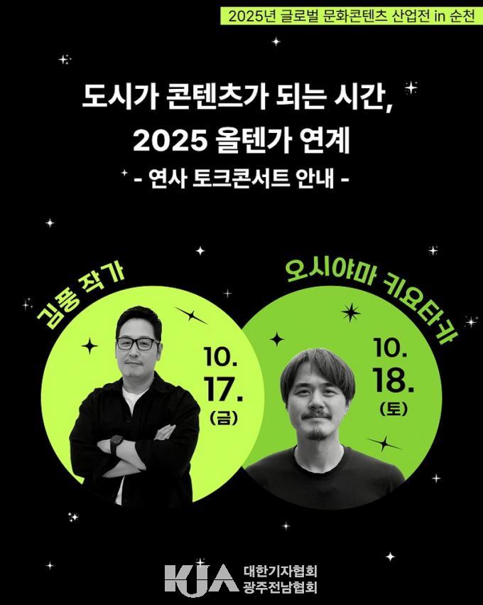 À̹ø ÅäÅ©ÄܼƮ´Â ¡¸2025 ±Û·Î¹ú ¹®ÈÄÜÅÙÃ÷ »ê¾÷Àü in ¼øÃµ¡¹ Çà»çÀÇ ÀÏȯÀ¸·Î ÁغñµÆ´Ù. ¸ÕÀú 17ÀÏ ±Ý¿äÀÏ ¿ÀÈÄ 5½Ã, Àαâ À¥Å÷ ÀÛ°¡ÀÌÀÚ ¹æ¼ÛÀÎÀ¸·Î Ȱ¾à ÁßÀÎ ±èdz ÀÛ°¡°¡ ¼øÃµ½Ã ¾î¿ï¸²µµ¼°ü ¾î¿ï¸¶´ç¿¡¼ °ü°´µé°ú ¸¸³´Ù.