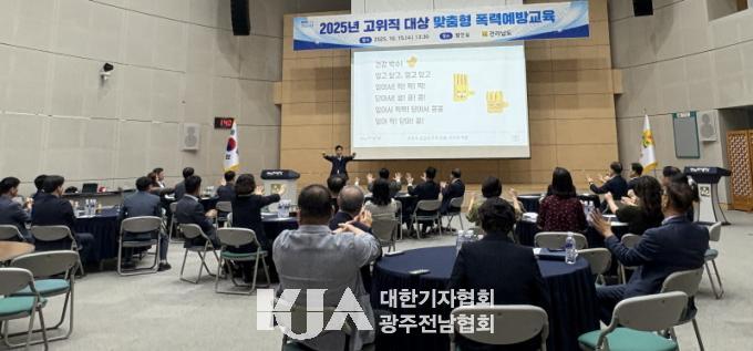 [´ëÇѱâÀÚÇùȸ ±¤ÁÖÀü³²Çùȸ] Àü¶ó³²µµ´Â 15ÀÏ Àü³²µµÃ» ¿ÕÀνǿ¡¼ °íÀ§Á÷ °ø¹«¿øÀ» ´ë»óÀ¸·Î ¸ÂÃãÇü 4´ë Æø·Â(¼ºÈñ·Õ¡¤¼º¸Å¸Å¡¤¼ºÆø·Â¡¤°¡Á¤Æø·Â) ¿¹¹æ±³À°À» ½Ç½ÃÇß´Ù.
