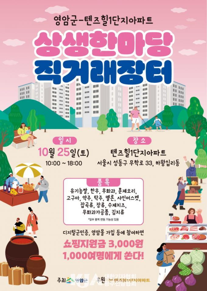 Á÷°Å·¡ÀåÅÍ¿¡´Â ¿µ¾Ï ÇÑ¿ì, À¯±â³ó½Ò, ¿À¸®°í±â, ¾àÁÖ, ±èÄ¡ µîÀ» ÆÇ¸ÅÇÏ´Â 15°³ Áö¿ª ¾÷ü°¡ Âü¿©ÇÑ´Ù. ¾Æ¿ï·¯ ¿Â¶óÀÎ ¿µ¾Ï¸ô °¡ÀÔ ¹× īī¿ÀÅå ±¸µ¶ À̺¥Æ®, µðÁöÅÐ ¿µ¾Ï±º¹ÎÁõ °¡ÀÔ È«º¸, °íÇâ»ç¶û±âºÎÁ¦ ÇöÀå ¾È³», »çȸ°ü°è¸Á¼ºñ½º(SNS) ÀÎÁõ À̺¥Æ® µî Âü¿© ÇÁ·Î±×·¥ÀÌ ÇÔ²² ¿î¿µµÈ´Ù.