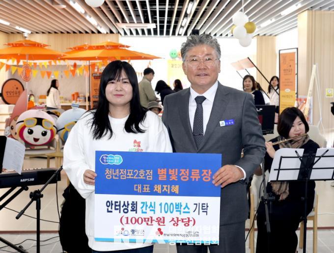 [´ëÇѱâÀÚÇùȸ ¿µ±¤±ºÁöȸ] ¿µ±¤±º(±º¼ö Àå¼¼ÀÏ)Àº Áö³ 27ÀÏ ¿µ±¤±º ±º¼¸é¿¡ À§Ä¡ÇÑ Ã»³âÁ¡Æ÷ 2È£Á¡ º°ºûÁ¤·ùÀå(´ëÇ¥ äÁöÇý)¿¡¼ Áö¿ª ¾î¸£½ÅÀ» À§ÇØ ¡®¾ÈÅÍ»óȸ °£½Ä 100¹Ú½º¡¯¸¦ ±âŹÇß´Ù°í ¹àÇû´Ù.