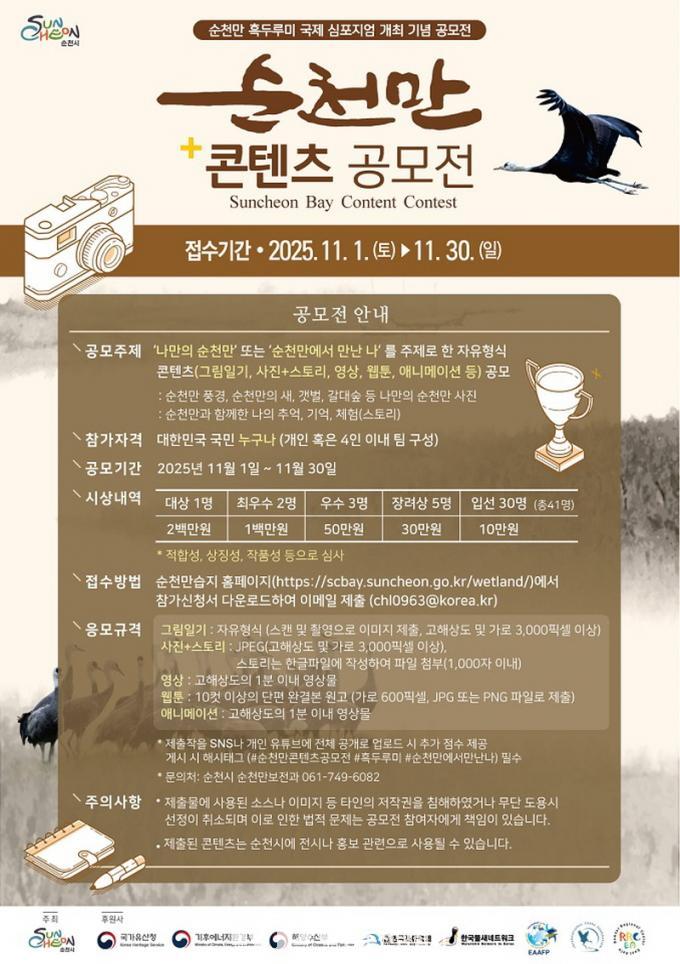 | ¼øÃµ½Ã, IUCN ȸ¿ø °¡ÀÔ ±â³ä ¡®¼øÃµ¸¸ ÄÜÅÙÃ÷ °ø¸ðÀü¡¯ °³ÃÖ ³ª¸¸ÀÇ ½Ã¼±À¸·Î ´ãÀº ¼øÃµ¸¸ À̾߱â, 11¿ù ÇÑ ´Þ°£ Àü±¹ °ø¸ð |