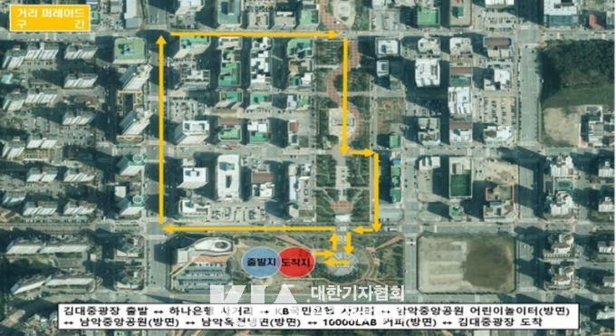 ÃàÁ¦ÀÇ ´ëÇ¥ÇÁ·Î±×·¥ÀÎ °Å¸® ÆÛ·¹À̵å´Â 15ÀÏ ¿ÀÈÄ 2½ÃºÎÅÍ 5½Ã±îÁö ÁøÇàµÇ¸ç, ±è´ëÁß±¤Àå ¡æ ÇϳªÀºÇà »ç°Å¸® ¡æ ±¹¹ÎÀºÇà »ç°Å¸® ¡æ ³²¾ÇÁß¾Ó°ø¿ø ¾î¸°À̳îÀÌÅÍ ¹æ¸é ¡æ ³²¾ÇÁß¾Ó°ø¿ø ¡æ ³²¾Ç¿Áõ³Ã¸é ¡æ ±¸ 10,000 LAB Ä¿ÇÇ ¡æ ±è´ëÁß±¤Àå ±¸°£Àº ÆÛ·¹ÀÌµå ½Ã°£ Àü¸é Â÷·® ÅëÁ¦°¡ ÀÌ·ç¾îÁø´Ù.