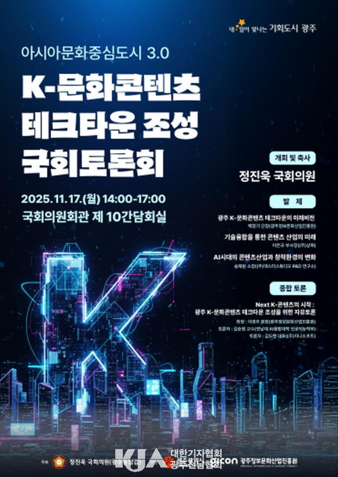 °±âÁ¤ ±¤ÁÖ½ÃÀåÀº ¡°À̹ø ±¹È¸ Åä·Ðȸ¸¦ °è±â·Î K-¹®ÈÄÜÅÙÃ÷ Å×ũŸ¿î Á¶¼º»ç¾÷ÀÌ Á¤ºÎÀÇ Àû±ØÀûÀÎ Áö¿øÀ» ¹Þ°í ¼º°øÀûÀ¸·Î ÃßÁøµÇ±æ ¹Ù¶õ´Ù¡±¸ç ¡°K-¹®ÈÄÜÅÙÃ÷ Å×ũŸ¿îÀº ±¤ÁÖ¸¦ ³Ñ¾î ´ëÇѹα¹ ÄÜÅÙÃ÷»ê¾÷ ±ÕÇü¹ßÀüÀÇ ÇÙ½É Ç÷§ÆûÀ¸·Î ÀÚ¸®¸Å±èÇÒ ¼ö ÀÖÀ» °ÍÀ¸·Î ±â´ëµÈ´Ù¡±°í °Á¶Çß´Ù.
