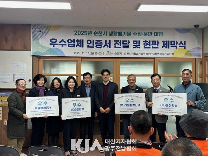 | ¼øÃµ½Ã, 2025³â »ýȰÆó±â¹° ¼öÁý¡¤¿î¹Ý ´ëÇà Æò°¡ ¿ì¼ö¾÷ü ÀÎÁõ¼ Àü´Þ½Ä °³ÃÖ ´ëÀÏ‧¼øÃµ‧ºÎÀÏ‧µ¿¾ÆÈ¯°æ 4°³ ´ëÇà¾÷ü ¸ðµÎ ¡®¿ì¼ö µî±Þ¡¯¡¦ 1À§ ¾÷ü ÇöÆÇ Á¦¸·½Äµµ |