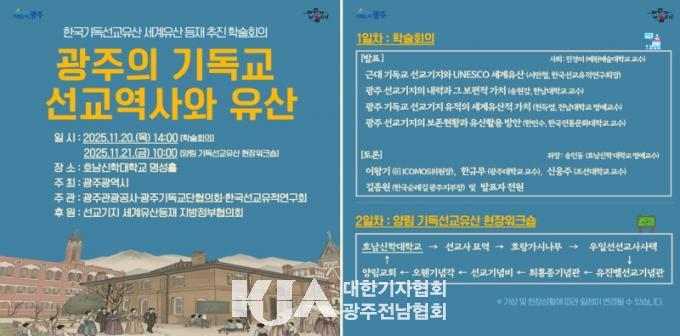 ±¤ÁÖ±¤¿ª½Ã(½ÃÀå °­±âÁ¤)´Â 20~21ÀÏ È£³²½ÅÇдëÇб³ ÀÏ¿ø¿¡¼­ ¡®Çѱ¹±âµ¶¼±±³À¯»ê ¼¼°èÀ¯»ê µîÀç ÃßÁøÀ» À§ÇÑ ÇмúȸÀÇ¿Í ¿öÅ©¼ó¡¯À» ¿­¾î Çѱ¹ ±Ù´ë ±âµ¶±³ ¼±±³ÀÇ ¿ª»çÀû °¡Ä¡¸¦ Á¶¸íÇÑ´Ù.