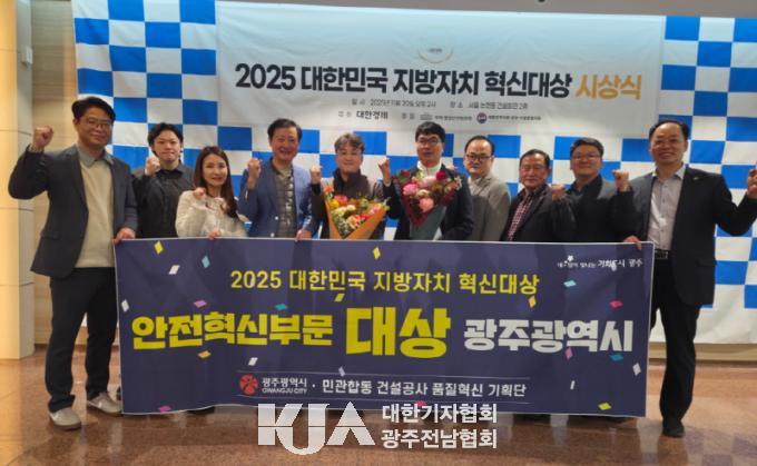 [´ëÇѱâÀÚÇùȸ ±¤ÁÖÀü³²Çùȸ] ±¤ÁÖ±¤¿ª½Ã(½ÃÀå °±âÁ¤)´Â 20ÀÏ ¼¿ï °Ç¼³È¸°ü¿¡¼ ¿¸° ¡®2025 ´ëÇѹα¹ Áö¹æÀÚÄ¡ Çõ½Å´ë»ó¡¯¿¡¼ ¾ÈÀüÇõ½Å ºÎ¹® ´ë»óÀ» ¼ö»óÇß´Ù.