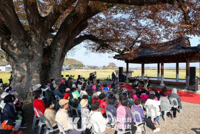 Ãß¼ö¸¦ ¸¶Ä£ µéÆÇ¿¡ ¿ì¶Ò ¼­ ÀÖ´Â 800³â ³Ñ´Â º¸È£¼ö ´ÀƼ³ª¹« ¾Æ·¡¼­ ÆîÃÄÁø ÀÌ À½¾Çȸ¿¡´Â ¸¶À»Áֹΰú °ü±¤°´ µî 400¿© ¸íÀÌ ÇÔ²² ÇØ ´Ê°¡À»ÀÇ Á¤Ãë¿¡ Èì»¶ ºüÁ³´Ù. Çϸð´ÏÄ« ¿¬ÁÖ, ÀçȰ¿ëǰ ÿ·Î¿¬ÁÖ µîÀÌ À̾îÁø À½¾Çȸ¿¡¼­´Â ÀåõÃÊ ÇлýµéÀÇ ¡®°¡À»Ç³°æ Àü½Ãȸ¡¯°¡ ¾î¿ì·¯Áö¸ç ¼±À²ÀÌ ÀÖ´Â ÇÑÆøÀÇ Ç³°æÈ­°¡ ¿¬ÃâµÆ´Ù.