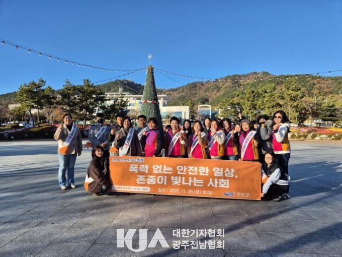 [´ëÇѱâÀÚÇùȸ Áøµµ±ºÁöȸ ¹Ú¿ëÁØ ±âÀÚ] Áøµµ±ºÀº ¿©¼ºÆø·Â Ãß¹æ ÁÖ°£À» ¸Â¾Æ ¡®Æø·Â ¾ø´Â ¾ÈÀüÇÑ ÀÏ»ó, Á¸ÁßÀÌ ºû³ª´Â »çȸ¡¯¸¦ ÁÖÁ¦·Î ¡®¿©¼ºÆø·Â Ãß¹æ ÁÖ°£ ÇÕµ¿ ¿îµ¿¡¯À» ÁøÇàÇß´Ù.