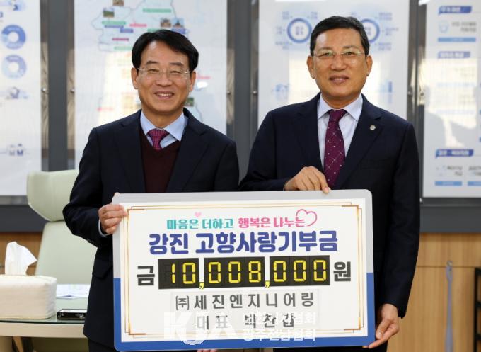 Àü±â¼³°è, ½ÅÀç»ý¿¡³ÊÁöÀåÄ¡ Á¦Á¶¾÷üÀÎ ¢ß¼¼Áø¿£Áö´Ï¾î¸µÀÇ ¹ÚÂù°© ´ëÇ¥´Â2023³â 500¸¸¿ø, Áö³­ÇØ 500¸¸¿ø ±âŹ¿¡ ÀÌ¾î ¿ÃÇØ 1,000¸¸ ¿øÀ» °íÇâ»ç¶û¿¡ ±âºÎÇÏ¸ç °¨µ¿À» ÀھƳ´Ù. ¹Ú ´ëÇ¥´Â ÀÎÀçÀ°¼ºÀåÇÐȸ, ÀåÇй®È­Àç´Ü, ÀÌ¿ôµ½±â ¼º±Ý µî ²ÙÁØÇÑ ±âºÎ¿Í °ü½ÉÀ» ÅëÇØ Áö¿ª»çȸ¿¡ °øÇåÀ» ÇØ¿Ô´Ù.
