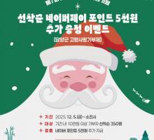 À̹ø À̺¥Æ®´Â 10¸¸ ¿ø ÀÌ»ó °íÇâ»ç¶û±âºÎ±ÝÀ» ³½ »ç¶÷ Áß ¼±Âø¼ø 350¸í¿¡°Ô ³×À̹öÆäÀÌ Æ÷ÀÎÆ® 5õ ¿ø±ÇÀ» Ãß°¡ ÁõÁ¤ÇÏ´Â Çà»ç·Î, ´ç÷ÀÚ´Â À̺¥Æ® Á¾·á ÈÄ °³º° ¾È³»ÇÒ ¿¹Á¤ÀÌ´Ù.