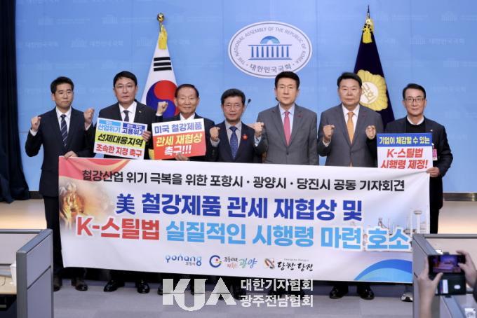 ±ÇÇ⿱ ±¹È¸ÀÇ¿ø(Àü³² ±¤¾ç½Ã), ÀÌ»óÈÖ ±¹È¸ÀÇ¿ø(°æºÏ Æ÷Ç׽à ³²±¸ ¿ï¸ª±º)°ú 3°³ µµ½Ã ½ÃÀå, »ó°øÈ¸ÀÇ¼Ò È¸ÀåÀÌ ÇÔ²² 12ÀÏ ¼¿ï ±¹È¸ ¼ÒÅë°ü¿¡¼ °øµ¿ ±âÀÚȸ°ßÀ» ¿°í, ¡®¹Ì±¹ ö°Á¦Ç° °ü¼¼ ÀçÇù»ó ¹× K-½ºÆ¿¹ý ½ÇÁúÀûÀÎ ½ÃÇà·É ¸¶·ÃÀ» À§ÇÑ ¿©‧¾ß‧Á¤ ¹üÁ¤ºÎ Â÷¿øÀÇ °øµ¿´ëÀÀ È£¼Ò¹®¡¯À» ¹ßÇ¥Çß´Ù.