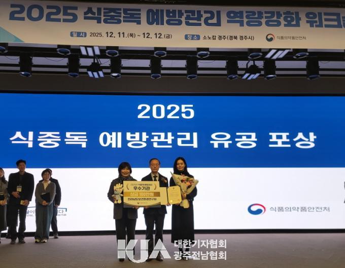 [´ëÇѱâÀÚÇùȸ ±¤ÁÖÀü³²Çùȸ] Àü¶ó³²µµº¸°Çȯ°æ¿¬±¸¿øÀÌ ½ÄǰÀǾàǰ¾ÈÀüóÀÇ ¡®2025³âµµ ½ÄÁßµ¶ ¿¹¹æ°ü¸® »ç¾÷¡¯ Æò°¡¿¡¼­ ¿ì¼ö±â°ü¿¡ ¼±Á¤µÅ ½ÄǰÀǾàǰ¾ÈÀüóÀå ±â°üǥâÀ» ¹Þ¾Ò´Ù.