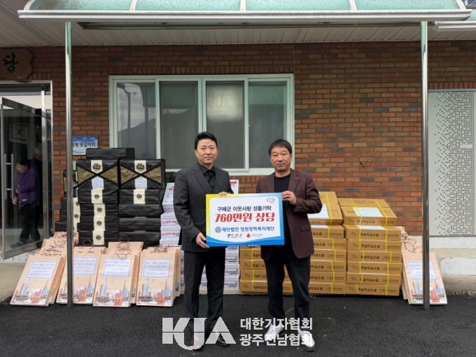 [´ëÇѱâÀÚÇùȸ ±¸·Ê±ºÁöȸ ±èÁ¤¿Á ±âÀÚ] ±¸·Ê±ºÀº 12¿ù 19ÀÏ, (Àç)Á¤¿øÀåÇк¹ÁöÀç´Ü(ÀÌ»çÀå ±è¿ë¸¸)¿¡¼­ ÅäÁö¸é ½ÅÃ̸¶À» Áֹΰú °ü³» °¡Á¤À§Å¹¼¼´ë¸¦ À§ÇØ ½Ò(20kg), µÅÁö°í±â ¼¼Æ®, »ýÇÊǰ ¼¼Æ®, ¶ó¸é µî ÃÑ 760¸¸ ¿ø »ó´çÀÇ ¹°Ç°À» Àü´ÞÇß´Ù°í ¹àÇû´Ù.