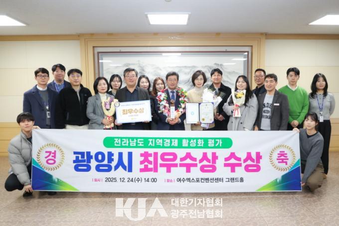 [´ëÇѱâÀÚÇùȸ ±¤¾ç½ÃÁöȸ] ±¤¾ç½Ã°¡ Àü¶ó³²µµ ÁÖ°ü ¡¸2025³â Áö¿ª°æÁ¦ Ȱ¼ºÈ­ Æò°¡¡¹¿¡¼­ ¡®ÃÖ¿ì¼ö»ó¡¯À» ¼ö»óÇϸç, Áö¿ª°æÁ¦ ȸº¹°ú ¹Î»ý°æÁ¦ ¾ÈÁ¤À» À§ÇÑ Á¤Ã¥ ÃßÁø ¼º°ú¸¦ ´Ù½Ã Çѹø ÀÔÁõÇß´Ù.