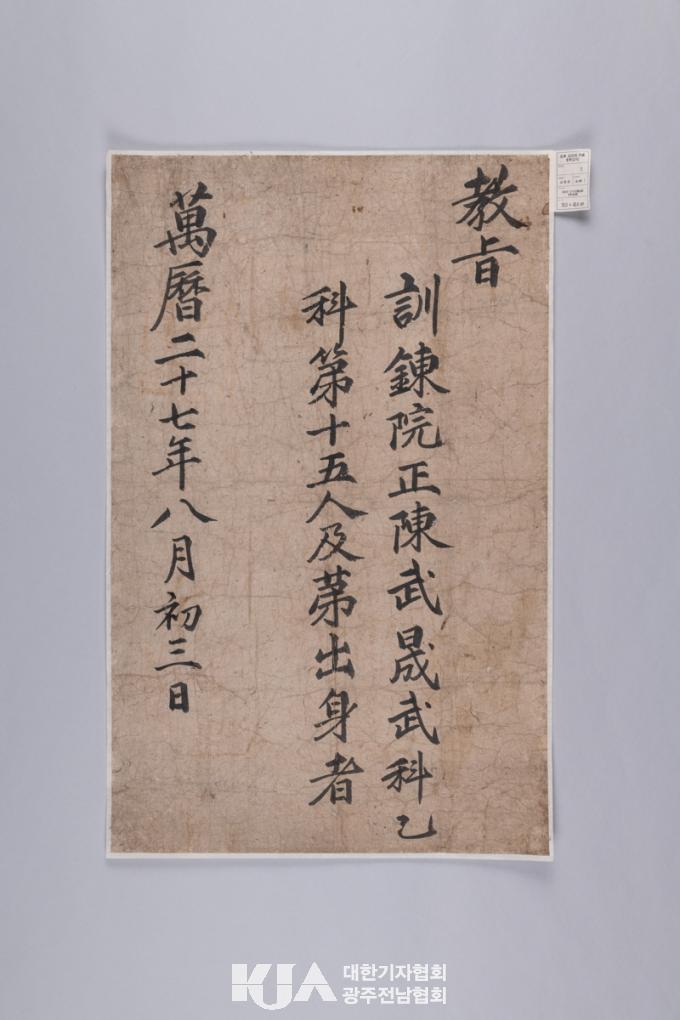 | | Àü¶ó³²µµ, °íÈï ¹«¿»ç °í¹®¼ µî 5°Ç µµ¹®È¡¤¹«ÇüÀ¯»ê ÁöÁ¤-°íÈï ¹«¿»ç ¼ÒÀå °í¹®¼, Áø¹«¼º ¹«°ú±ÞÁ¦(È«ÆÐ) ±³Áö(1599) |