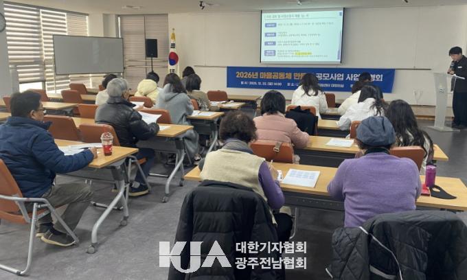 [´ëÇѱâÀÚÇùȸ ³ªÁÖ½ÃÁöȸ ±èÁ¾±Ù ±âÀÚ] ³ªÁֽð¡ ÁֹΠÁÖµµÀÇ ¸¶À»°øµ¿Ã¼ Çü¼º°ú Áö¿ª ¹®Á¦ ÇØ°áÀ» Áö¿øÇϱâ À§ÇØ ¡®2026³â ¸¶À»°øµ¿Ã¼ ¸¸µé±â °ø¸ð»ç¾÷¡¯ ¼³¸íȸ¸¦ ¿­°í »ç¾÷ ¹æÇâ°ú Âü¿© ¹æ¹ýÀ» °øÀ¯Çß´Ù.
