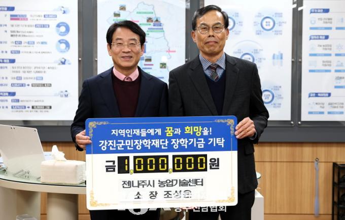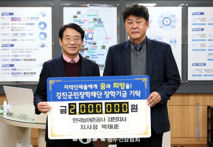 ¹ÚÅÂÁØ Çѱ¹³ó¾îÃ̰ø»ç °ÁøÁö»ç Áö»çÀåÀÌ 2¹é¸¸ ¿ø, À±ÁØÈ£ Àü³²¹®È°ü±¤Çؼ³»çÇùȸ °Áø±ºÁöȸ À±ÁØÈ£ ȸÀå, Á¶¼ºÀº Àü(îñ) ³ªÁֽà ³ó¾÷±â¼ú¼¾ÅÍ ¼ÒÀå, Á¶Àμ® ±ºµ¿ ³²¹Ì¸¤»ç dz¿ä·Î¿î ÆíÀÇÁ¡ ´ëÇ¥, ±èº´¸² µµ¾Ï¸é ÀÌÀå´Ü ´ÜÀå, ±èÇÑÃá Ç÷£¿£Áö´Ï¾î¸µ(ÁÖ) ´ëÇ¥°¡ °¢ 1¹é¸¸ ¿øÀÇ ÀåÇбÝÀ» °Áø±º¹ÎÀåÇÐÀç´Ü(°Áø¿ø)¿¡ ±âŹ Çß´Ù.