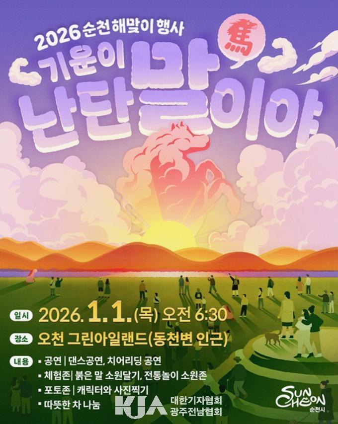 [´ëÇѱâÀÚÇùȸ ¼øÃµ½ÃÁöȸ] ¼øÃµ½Ã´Â 2026³â 1¿ù 1ÀÏ, ½Ã¹ÎµéÀÇ »õÇØ Ȱ·ÂÀ» ºÒ¾î³ÖÀ» º´¿À³â ÇØ¸ÂÀÌ Çà»ç¸¦ ¿Àõ±×¸°¾ÆÀÏ·£µå¿¡¼­ °³ÃÖÇÑ´Ù. ÀÏÃ⠽ð¢ ÀüÀÎ ¿ÀÀü 6½Ã 30ºÐºÎÅÍ 8½Ã±îÁö ½Ã¹Îµé°ú ÇÔ²² »õÇØ¸¦ ¸ÂÀÌÇÒ ¿¹Á¤ÀÌ´Ù.