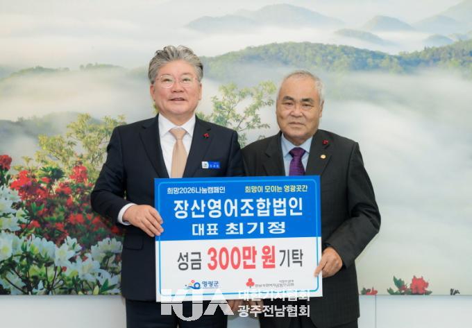 [´ëÇѱâÀÚÇùȸ ¿µ±¤±ºÁöȸ] ¿µ±¤±ºÀº 30ÀÏ, ¹é¼öÀ¾ Àå»ê·Î¿¡ À§Ä¡ÇÑ Àå»ê¿µ¾îÁ¶ÇÕ¹ýÀÎ(´ëÇ¥ ÃÖ±âÁ¤)Àº ÇÑÆÄ·Î ¾î·Á¿òÀ» °Þ°í ÀÖ´Â Áö¿ª ³» À§±â°¡Á¤À» µ½°íÀÚ ¼º±Ý 300¸¸ ¿øÀ» ¡®Èñ¸ÁÀÌ ¸ðÀÌ´Â ¿µ±¤°÷°£¡¯¿¡ ±âŹÇß´Ù.