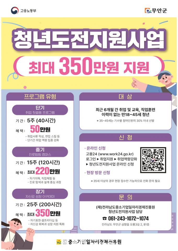 ¸ðÁýÀº ¿¹»ê ¼ÒÁø ½Ã±îÁö »ó½Ã ÁøÇàµÇ¸ç, ½ÅûÀº °í¿ë24 ´©¸®Áý(www.work24.go.kr)À» ÅëÇØ °¡´ÉÇÏ´Ù. ¶ÇÇÑ Àü³²ÀÏÀÚ¸®Á¾ÇÕ¼¾ÅÍ ¹«¾ÈÁö¼Ò(¹«¾È±º »ïÇâÀ¾ ¿À·æ3±æ 2)¸¦ ¹æ¹®ÇØ Á¢¼öÇÒ ¼öµµ ÀÖ´Ù.