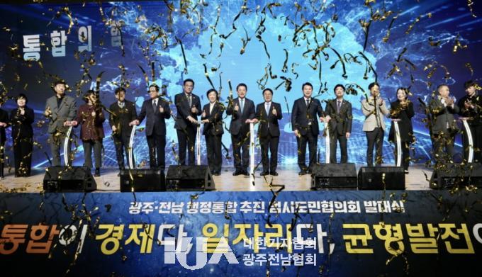 ±¤ÁÖ±¤¿ª½Ã(½ÃÀå °±âÁ¤)¿Í Àü¶ó³²µµ(Áö»ç ±è¿µ·Ï)´Â 16ÀÏ ¿ÀÈÄ 3½Ã ±è´ëÁßÄÁº¥¼Ç¼¾ÅÍ¿¡¼ ¡®±¤ÁÖ‧Àü³² ÇàÁ¤ÅëÇÕ ÃßÁø ¹ü½Ãµµ¹Î ÇùÀÇȸ¡¯ ¹ß´ë½ÄÀ» ¿°í, ´ëÇѹα¹ ÃÖÃÊÀÇ ÅëÇÕ ±¤¿ªÁö¹æÁ¤ºÎ ź»ýÀ» À§ÇÑ ½Ãµµ¹Î ¿ª·® °áÁý¿¡ ³ª¼¹´Ù.