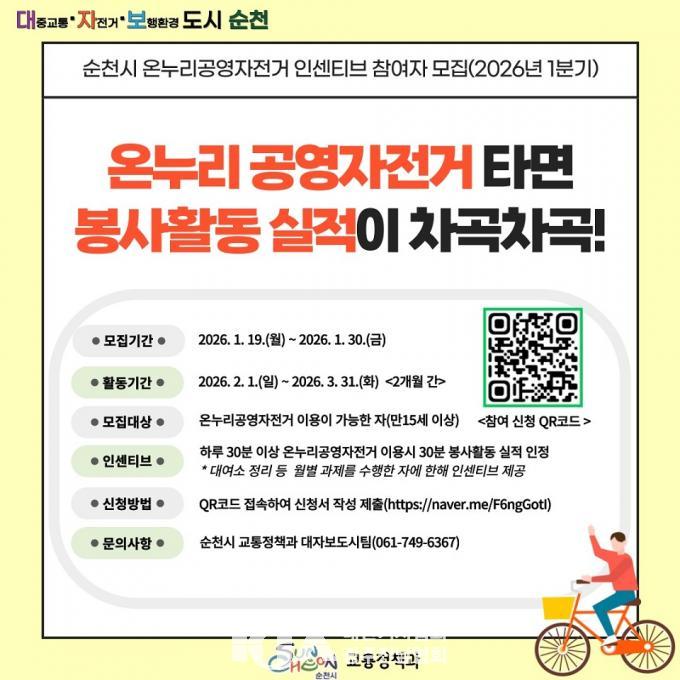À̹ø 1ºÐ±â Âü¿©ÀÚ ¸ðÁýÀº 1¿ù 19ÀϺÎÅÍ 1¿ù 30ÀϱîÁö ÁøÇàµÇ¸ç, 2¿ùºÎÅÍ 3¿ù±îÁö 2°³¿ù°£ Ȱµ¿ÇÏ°Ô µÈ´Ù. ¸¸ 15¼¼ ÀÌ»ó °ø¿µÀÚÀü°Å ÀÌ¿ëÀÌ °¡´ÉÇÑ ½Ã¹ÎÀ̶ó¸é ´©±¸³ª Âü¿©ÇÒ ¼ö ÀÖÀ¸¸ç, QRÄÚµå(https://naver.me/F6ngGotI)¸¦ ÅëÇØ °£ÆíÇÏ°Ô ½ÅûÇÒ ¼ö ÀÖ´Ù.
