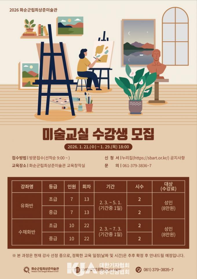 | ȼø±º¸³ÃÖ»óÁع̼ú°ü, ¹Ì¼ú±³½Ç ¼ö°»ý ¸ðÁý ¸ÂÃãÇü ¹Ì¼ú±³À° ÇÁ·Î±×·¥ ¿î¿µ...1¿ù 21ÀϺÎÅÍ 29ÀϱîÁö ½Åû |