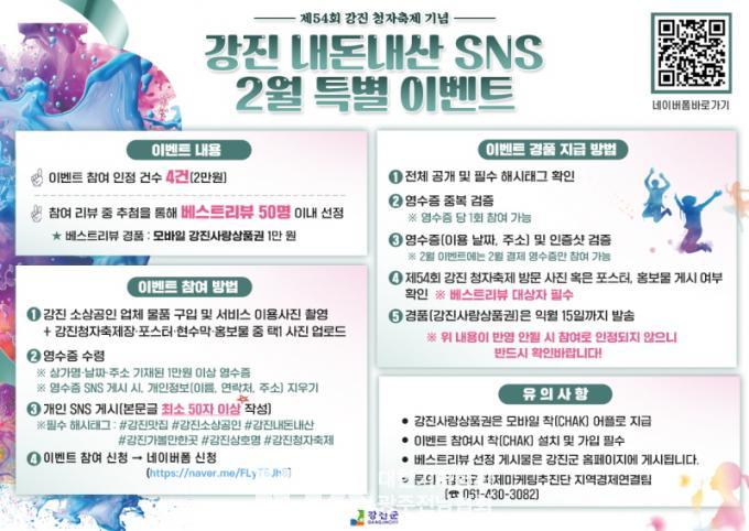 [´ëÇѱâÀÚÇùȸ °­Áø±ºÁöȸ ±è¿µÀÏ ±âÀÚ] °­Áø±ºÀÌ °ü³» ¼Ò»ó°øÀÎ ¾÷¼Ò Ȱ¼ºÈ­¿Í È«º¸ Áö¿øÀ» À§ÇØ ÃßÁø ÁßÀÎ ¡®°­Áø±º ³»µ·³»»ê SNS ¸®ºä À̺¥Æ®¡¯¸¦ Á¦54ȸ °­Áø ûÀÚ ÃàÁ¦ ±â³äÀ¸·Î 2¿ù ÇÑ ´Þ°£ Ưº°ÇÏ°Ô ÁøÇàÇÑ´Ù.