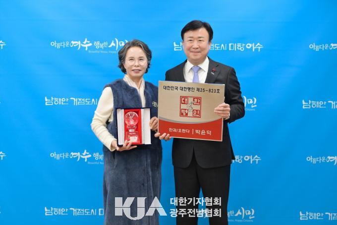 [´ëÇѱâÀÚÇùȸ ¿©¼ö½ÃÁöȸ] ¿©¼ö½Ã°¡ ¡®Á¦35Â÷ ´ëÇѹα¹ ´ëÇѸíÀÎ ¼±Á¤¡¯¿¡¼ ÀüÅë ÇѰú¡¤¿À¶õ´Ù ºÐ¾ß 1È£ ¸íÀÎÀ¸·Î ¼Û½Ã¸¶À» ÁÖ½Äȸ»ç ¹ÚÀ±´ö ´ëÇ¥°¡ ¼±Á¤µÆ´Ù°í ¹àÇû´Ù.