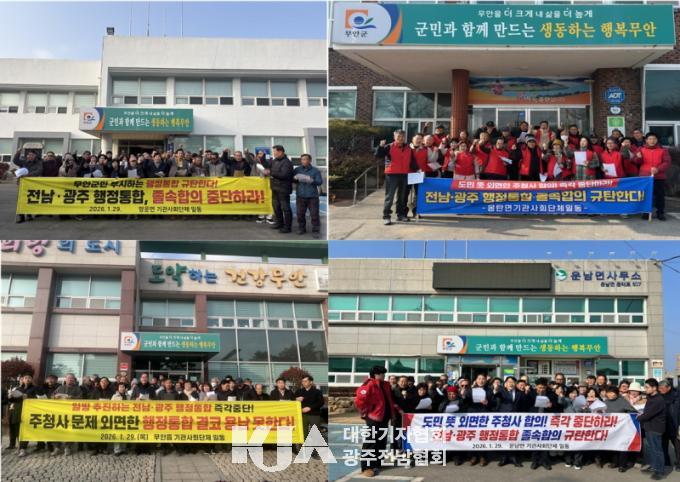 ¹«¾ÈÀ¾ ±â°ü»çȸ´ÜüÇùÀÇȸ µî 7°³ À¾¸é ±â°ü»çȸ´ÜüÇùÀÇȸ Àϵ¿Àº ¡°ÁÖû»ç È®Á¤ ¾ø´Â ÇàÁ¤ÅëÇÕ¿¡´Â µ¿ÀÇÇÒ ¼ö ¾ø´Ù¡±¸ç ¡°Àü¶ó³²µµÃ»À» ÅëÇÕ ±¤¿ªÇàÁ¤ÀÇ ÁÖÃàÀ¸·Î ¸íÈ®È÷ Çϰí, ÁÖû»ç°¡ Àü¶ó³²µµÃ»À¸·Î È®Á¤µÉ ¼ö ÀÖµµ·Ï ³¡±îÁö ³ë·ÂÇϰڴ١±°í ¹àÇû´Ù.