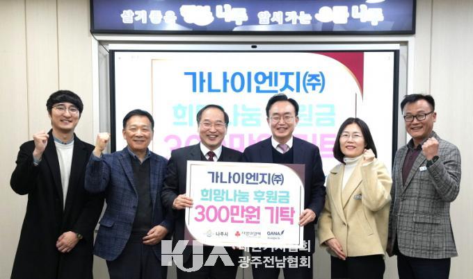 [´ëÇѱâÀÚÇùȸ ³ªÁÖ½ÃÁöȸ ±èÁ¾±Ù ±âÀÚ] ³ªÁֽô ½ÅÀç»ý ¿¡³ÊÁö ±â¾÷ÀÎ °¡³ªÀÌ¿£Áö¢ß(´ëÇ¥ Á¤±¤·¡, ¿ÞÂÊ ¼¼ ¹øÂ°)¿¡¼ Áö³ 3ÀÏ ³ªÁֽÿ¡ »ç¶ûÀÇ ¼º±Ý 300¸¸ ¿øÀ» ±âŹÇß´Ù°í ¹àÇû´Ù.