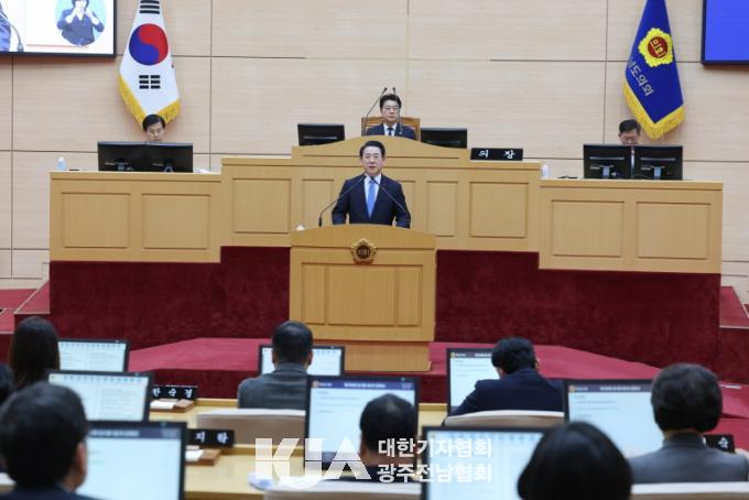 ±è¿µ·Ï Áö»ç´Â À̳¯ Á¦¾È¼³¸íÀ» ÅëÇØ ¡°Àü³²¡¤±¤ÁÖ ÇàÁ¤ÅëÇÕÀº AI¡¤¿¡³ÊÁö ´ëÀüȯ ½Ã´ë¿¡ Á¤ºÎÀÇ ÆÄ°ÝÀû Áö¿øÀ» À̲ø¾î³» Áö¿ªÀÇ ´ëºÎÈï ½Ã´ë¸¦ ¿±â À§ÇÑ Àý¹ÚÇÔ°ú Ã¥ÀÓ°¨ÀÇ »ê¹°¡±À̶ó¸ç ¡°»ê¾÷À» ÀÏÀ¸ÄÑ ±â¾÷°ú ÀÏÀÚ¸®°¡ ´Ã¾î³ª°í û³âÀÌ µ¹¾Æ¿À´Â ±ÕÇü¹ßÀü°ú ¹ø¿µÀÇ ¼±¼øÈ¯ ±¸Á¶¸¦ ¸¸µå´Â °ÍÀÌ ÅëÇÕÀÇ ¸íÈ®ÇÑ ¸ñÀû¡±À̶ó°í ¼³¸íÇß´Ù.