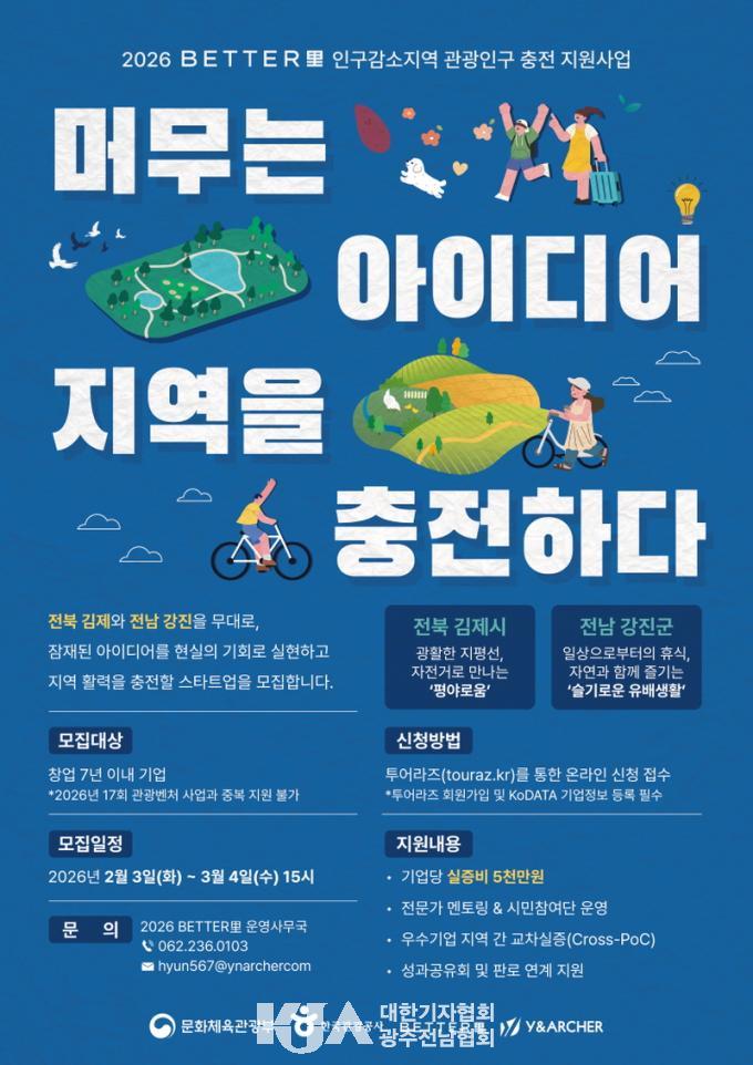 [´ëÇѱâÀÚÇùȸ °Áø±ºÁöȸ ±è¿µÀÏ ±âÀÚ] °Áø±ºÀÌ °ü±¤¡¤¹®È ÀÚ¿øÀ» Ȱ¿ëÇÑ ½ÇÁõ »ç¾÷À» ÇÔ²² ÃßÁøÇÒ ¡¯2026 BETTER×ì(¹èÅ͸®) Àα¸°¨¼ÒÁö¿ª °ü±¤Àα¸ ÃæÀü Áö¿ø»ç¾÷¡® Âü¿©±â¾÷À» ¸ðÁýÇÑ´Ù.