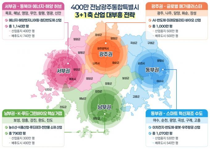 ±è Áö»ç´Â ¡°Àü³²±¤ÁÖÅëÇÕÆ¯º°½Ã¸¦ ±âÁ¸ ±¤Áֱǡ¤¼ºÎ±Ç¡¤µ¿ºÎ±Ç 3Ãà ±Ç¿ª¿¡ »õ·Î ³²ºÎ±ÇÀ» Æ÷ÇÔ½ÃÄÑ ¡®3+1Ã࡯ 4´ë ±Ç¿ªÀ¸·Î ÀçÆíÇϰڴ١±¸ç ¡°ÃÑ 4õ¸¸ Æò ±Ô¸ðÀÇ Æ¯È»ê¾÷ ´ÜÁö¿Í ÷´Ü»ê¾÷ ½Åµµ½Ã¸¦ Á¶¼ºÇØ 400¸¸ Ưº°½Ã¸¦ ¿Ï¼ºÇϰڴ١±°í ¹àÇû´Ù.