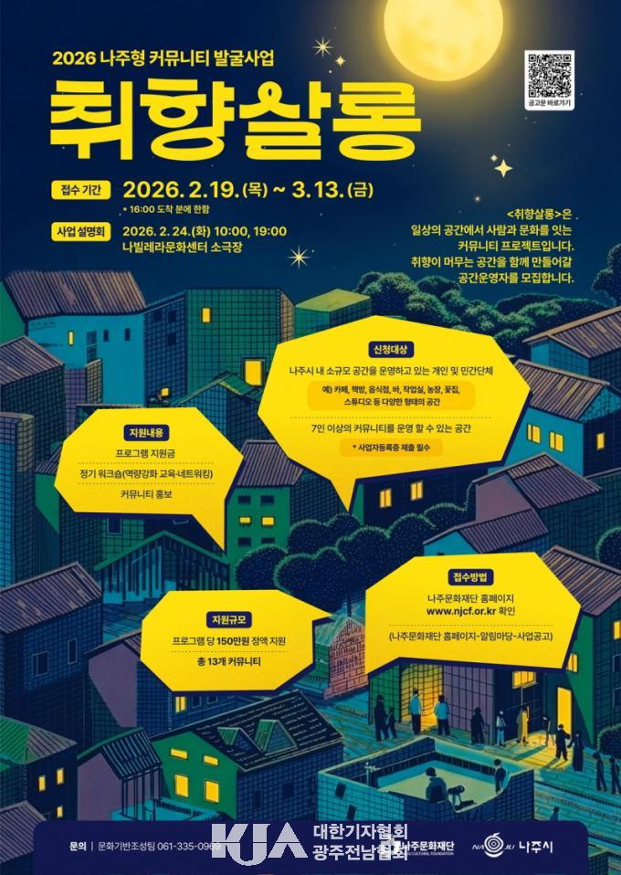 | ³ªÁÖ¹®ÈÀç´Ü, ¡®ÃëÇâ»ì·Õ¡¯ °ø°£¿î¿µÀÚ ¸ðÁý Ä«Æä, Ã¥¹æ µî Áö¿ª ¼Ò±Ô¸ð °ø°£ 13°³¼Ò ¼±Á¤¡¦È°µ¿ºñ 150¸¸ ¿ø Áö¿ø |
