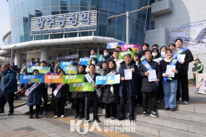[´ëÇѱâÀÚÇùȸ ±¤ÁÖÀü³²Çùȸ] ±¤ÁÖ±¤¿ª½Ã(½ÃÀå °­±âÁ¤)´Â 14ÀÏ ±¤ÁÖ¼ÛÁ¤¿ª¿¡¼­ ¼³ ¸íÀý ±Í¼º°´À» ´ë»óÀ¸·Î KTX È£³²¼± ´Ü°èÀû ÁõÆí°ú ±¤ÁÖÀü³² ÅëÇÕ ¼Ò½ÄÀ» ¾Ë¸®±â À§ÇÑ È«º¸ Ä·ÆäÀÎÀ» ÆîÃÆ´Ù.