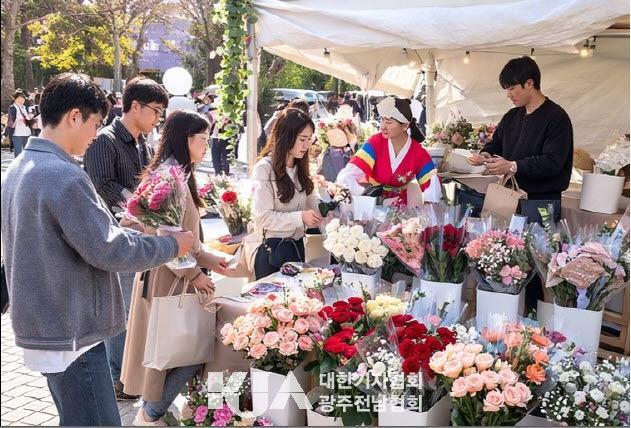 ¶ÇÇÑ °³¸·½Ä¿¡¼´Â °ü¶÷°´À» ´ë»óÀ¸·Î Àå¹Ì ¹«·á ³ª´® Çà»ç¸¦ ÁøÇàÇØ ÃàÁ¦ ºÐÀ§±â¸¦ ÇÑÃþ ²ø¾î¿Ã·È´Ù. Çà»çÀåÀ» ãÀº ¹æ¹®°´µé¿¡°Ô Àå¹Ì ÇÑ ¼ÛÀ̸¦ Àü´ÞÇÏ¸ç °Áø Àå¹ÌÀÇ ¾Æ¸§´Ù¿ò°ú Çâ±â¸¦ Á÷Á¢ üÇèÇÒ ¼ö ÀÖµµ·Ï Çß°í, ÀÚ¿¬½º·´°Ô Á÷°Å·¡ ÆÇ¸Å ºÎ½º·Î °ü½ÉÀÌ À̾îÁö´Â È¿°úµµ ³ªÅ¸³µ´Ù.