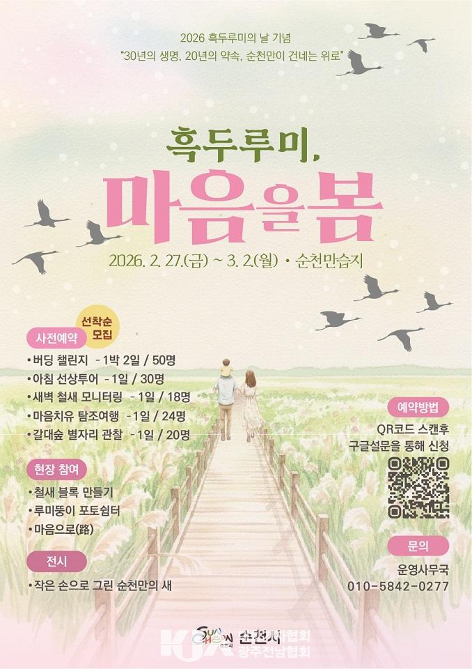 | 2026 ¼øÃµ¸¸ ÈæµÎ·ç¹ÌÀÇ ³¯ ±â³ä, ¸±·¹ÀÌ ÅäÅ© ÄܼƮ¡¤Ä¡À¯ ŽÁ¶ ÇÁ·Î±×·¥ °³ÃÖ ¿À´Â 27ÀÏ, ¸À¡¤¿¹¼ú¡¤Ã¶ÇÐÀ¸·Î Ç®¾î³»´Â 3ÀÎ 3»ö ¼øÃµ ¸±·¹ÀÌ ÅäÅ© ÄܼƮ |
