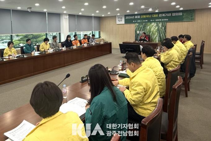 À̳¯ ´ã¾ç±ºÃ» ¼Û°­Á¤½Ç¿¡¼­ ¿­¸° ȸÀÇ¿¡´Â ´ã¾ç¼Ò¹æ¼­, ´ã¾ç°æÂû¼­, Çѱ¹Àü·Â°ø»ç, »ê¸²Á¶ÇÕ µî »êºÒ °ü°è±â°ü°ú °¢ À¾¸éÀåµµ Âü¼®ÇØ º½Ã¶ »êºÒ¹æÁö Á¾ÇÕ´ëÃ¥À» °øÀ¯ÇÏ°í ±â°üº° ´ëÀÀ ¿ªÇÒ°ú °øÁ¶ ü°è¸¦ Á¡°ËÇß´Ù.