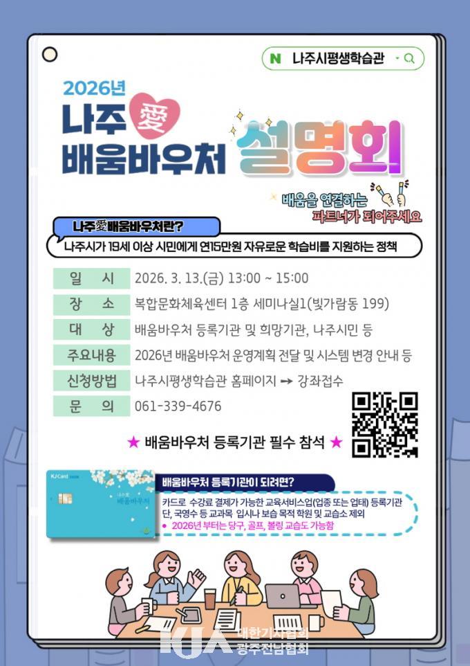 | ³ªÁÖ½Ã, 2026³â ¡®³ªÁÖ¾Ö(äñ) ¹è¿ò¹Ù¿ìó¡¯ ¼³¸íȸ °³ÃÖ ½Ã¹Î, ±³À°±â°ü°ú ÇÔ²²ÇÏ´Â Æò»ýÇнÀ ¼ÒÅëÀÇ Àå ¸¶·Ã |