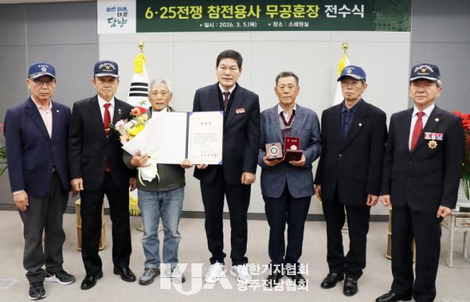 [´ëÇѱâÀÚÇùȸ ´ã¾ç±ºÁöȸ Ź»óÈÆ ±âÀÚ] ´ã¾ç±ºÀº 5ÀÏ ±ºÃ» ¼Ò¼â¿ø½Ç¿¡¼­ 6¡¤25 ÀüÀï ÂüÀü¿ë»çÀÎ °í(ͺ) Á¶µ¿±Ô »óº´ÀÇ À¯Á·¿¡°Ô ¹«°øÈÆÀåÀ» Àü¼öÇß´Ù°í ¹àÇû´Ù.
