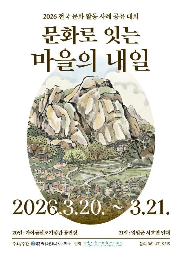 | (Àç)¿µ¾Ï¹®È°ü±¤Àç´Ü, Àü±¹ ¹®È Ȱµ¿ »ç·Ê °øÀ¯ ´ëȸ 3.20. ~ 3.21. °³ÃÖ ¹®È·Î ÀÕ´Â ¸¶À»ÀÇ ³»ÀÏ |