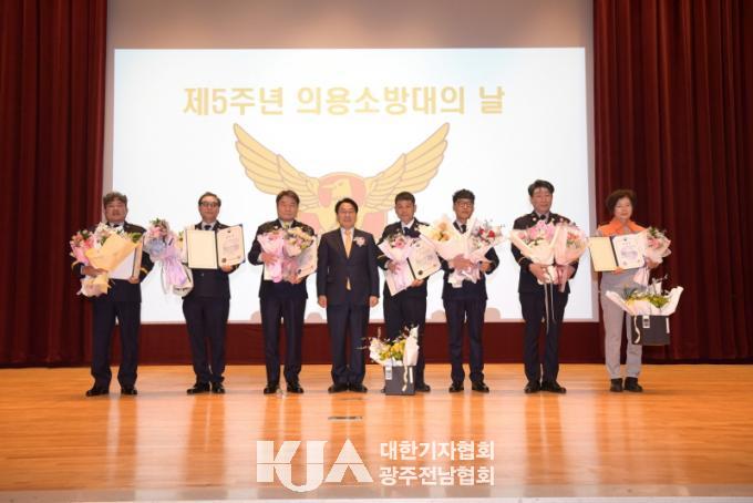 °±âÁ¤ ±¤ÁÖ½ÃÀåÀº ¡°ÀÇ¿ë¼Ò¹æ´ë¿øµéÀº Àç³ ÇöÀå°ú Áö¿ª»çȸ °÷°÷¿¡¼ ½Ã¹ÎÀÇ »ý¸í°ú ¾ÈÀüÀ» ÁöŰ´Â µçµçÇÑ µ¿¹ÝÀÚ¡±¶ó¸ç ¡°¾ÕÀ¸·Îµµ ÀÇ¿ë¼Ò¹æ´ë Ȱµ¿À» Àû±Ø Áö¿øÇØ ½Ã¹ÎÀÌ ¾È½ÉÇÒ ¼ö ÀÖ´Â ¾ÈÀüµµ½Ã¸¦ ¸¸µé°Ú´Ù¡±°í ¸»Çß´Ù.