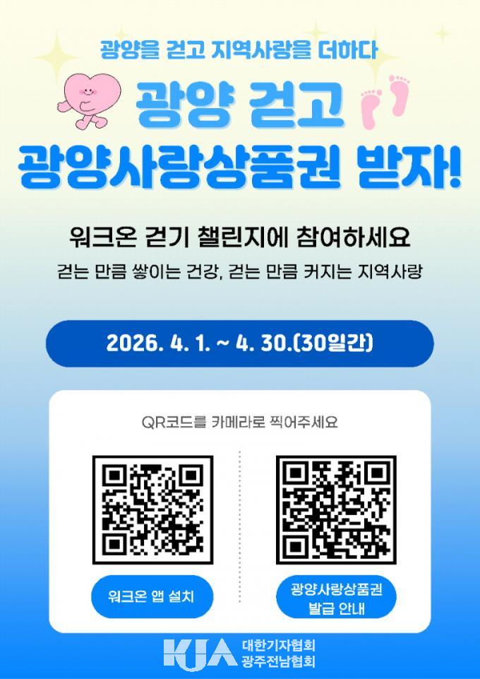 [´ëÇѱâÀÚÇùȸ ±¤¾ç½ÃÁöȸ] ±¤¾ç½Ã°¡ ¿À´Â 4¿ùºÎÅÍ ½Ã¹Î °Ç°­ ÁõÁø°ú Áö¿ª°æÁ¦ Ȱ¼ºÈ­¸¦ À§ÇØ ¸ð¹ÙÀÏ °È±â ¾Û ¡®¿öÅ©¿Â¡¯ °È±â 縰Áö º¸»óÀ» ±âÁ¸ ¸ð¹ÙÀÏ »óǰ±Ç¿¡¼­ ±¤¾ç»ç¶û»óǰ±ÇÀ¸·Î º¯°æÇØ Áö±ÞÇÑ´Ù°í ¹àÇû´Ù.